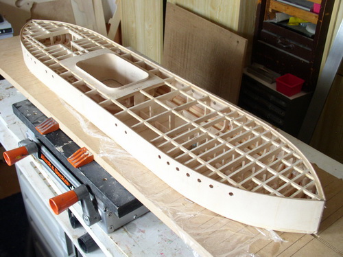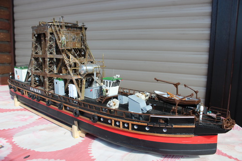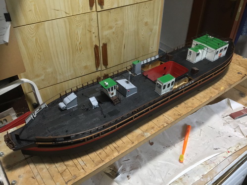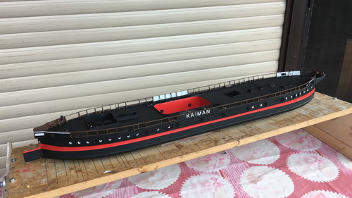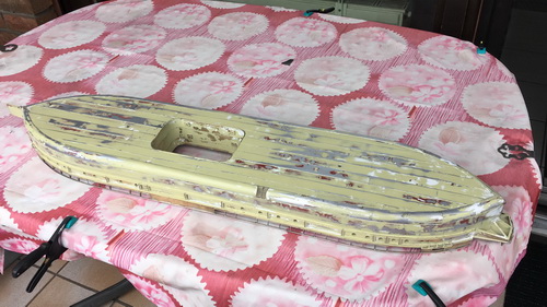 Rumpf und einen Teil der Aufbauten nach der Lackierung  |